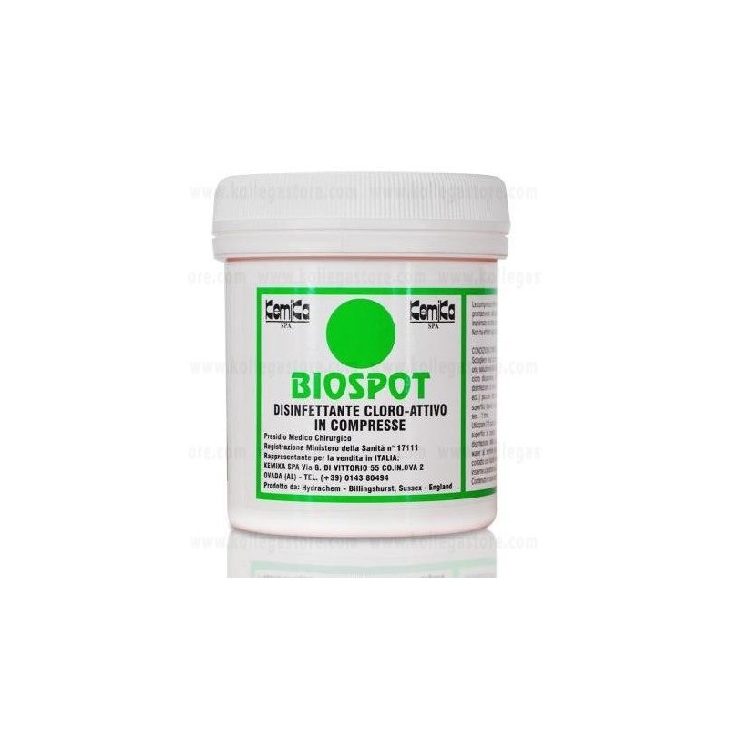BIOSPOT é un composto a base di dicloroisocianurato di sodio, con un contenuto di cloro attivo del 33% per una pronta azione disinfettante. È indicato per la degerminazione di superfici o pareti in cucine, servizi igienici, in ospedali, collegi,caserme, ristoranti, alberghi ecc.ecc.