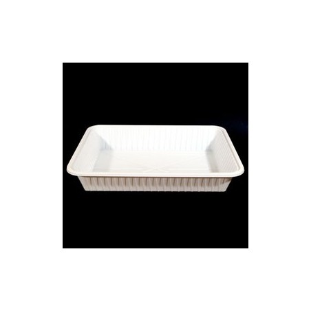 Vassoio in polistirolo bianco, per uso alimentare. Capacità cc.3400 - mm 330x250xh53 - gr.66. Confezione da 170 pezzi.